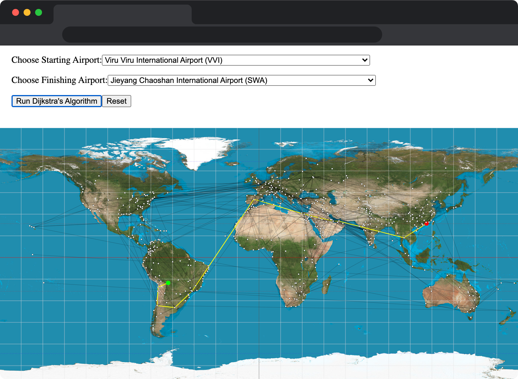 Airline routing application leveraging Dijkstra's algorithm to find the shortest path.