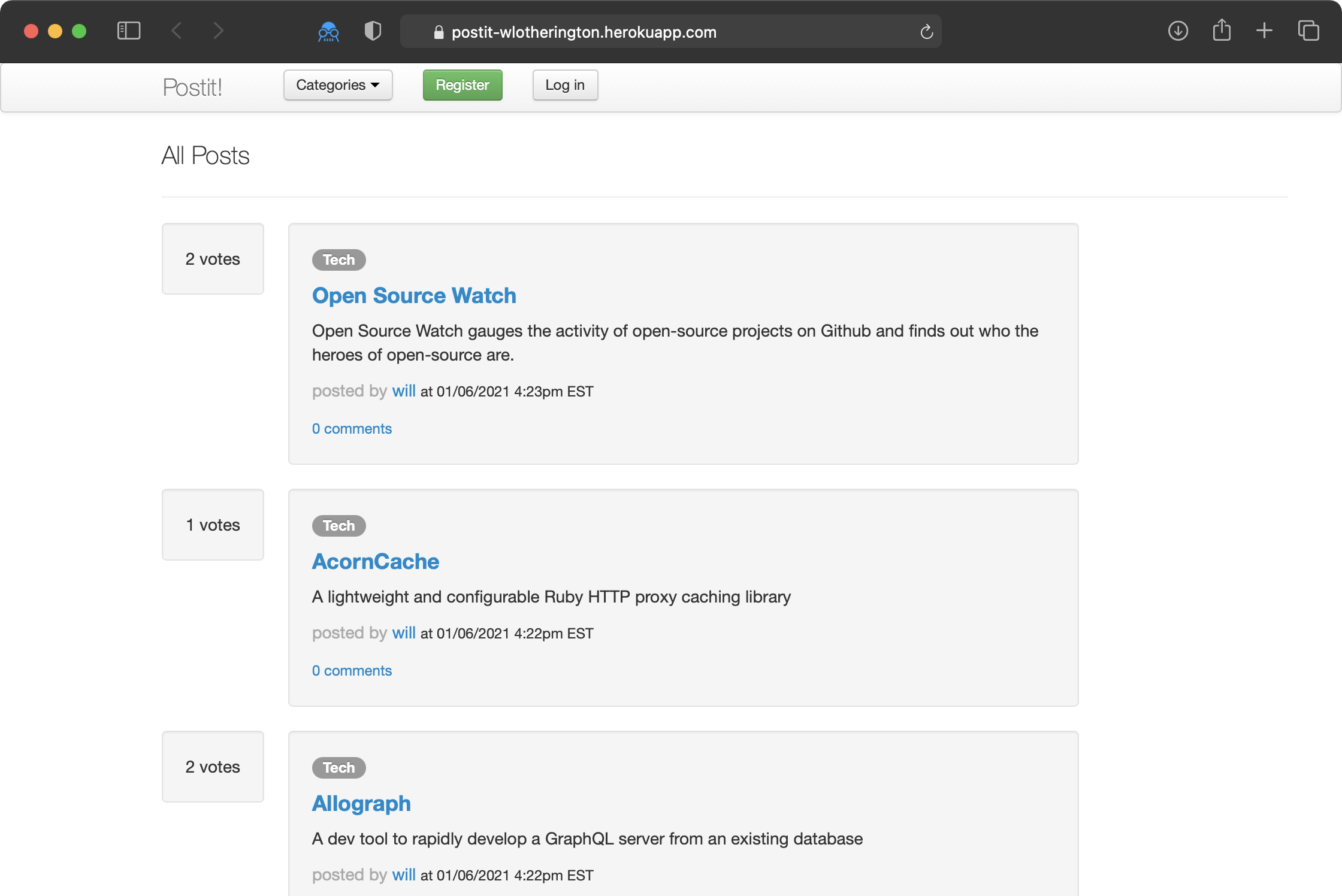 Reddit-like social message board.
