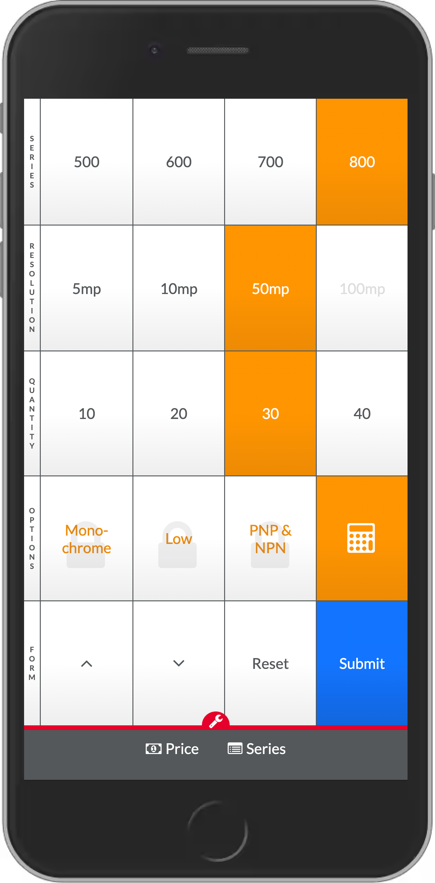 iPhone optimized price estimator application to enable salespeople to quickly estimate prices.